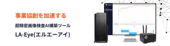 画像解析AI構築ソフトウェアLA-Eye(エルエーアイ, 2023年9月リリース)は利用者の目的に合わせた画像解析AIを構築できます。お客様の課題に合わせた操作画面のカスタマイズやお客様ブランド(ロゴの変更等)での提供も可能です。画像解析AIの構築・現場導入において必要な業務の手間を大きく引き下げ、検証から運用までのトータルコストと時間を最小化します。