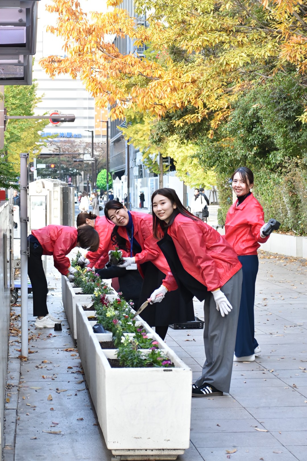 今回の活動では、約30名の役職員が参加し、ごみ拾いや花壇への花植えを行いました。落ち葉で覆われていた道もきれいになり、花壇には新しい花が加わって、すがすがしい気持ちで活動を終えることができました。